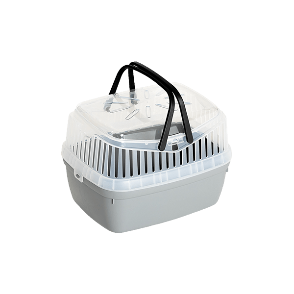 La tapa translúcida con ranuras de ventilación permite un flujo de aire óptimo para mantenerlo fresco y cómodo, mientras que el techo transparente te deja vigilarlo en todo momento (porque sabemos que algunos son expertos en escapismo 🕵️♂️). Además, sus dos agarraderas ergonómicas hacen que llevarla sea súper práctico y sin complicaciones.